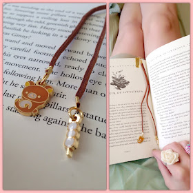 This bookmark has a gold little clip that says Rilakkuma that you put on the page you'd like to save. The clip has charms that hang down that will help keep your page and keeps your book looking adorable.