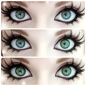 I am always on the hunt for my number one circle lens staple: green lenses that blend fairly naturally with my green eyes but also have a huge enlarging effect. You usually get one or the other. I wanted the enlarging effect of the Dolly Plus series but with the naturalness of the Super Pinky series. After digging through Pinky Paradise's HUGE selection, I finally found my dream pair.