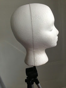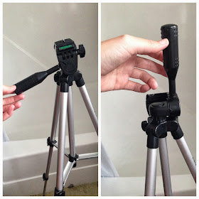 First, grab a tripod or some sort of stand that you will be able to attach your foam head to that will allow your wig to hang completely straight when wet. When I thought of using my regular tripod, I got nervous about drenching it in hot water. However, being a photographer, I fortunately have spare tripods laying around. I picked my cheapest tripod (I think it was like $15USD) for my hot water tester tripod. I'm sure the water wouldn't damage a tripod but I didn't want to take the risk with my nicer one.