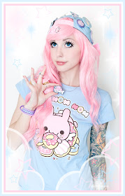 The shirt that I picked from Tasty Peach is their SUPER CUTE Chirii Bunny Tee. They have a great selection of printed tees to choose from so this was a hard choice to make! I went with the Chirii Bunny tee because it is my favorite colors... light blue and pink! And because... DONUTS! :3